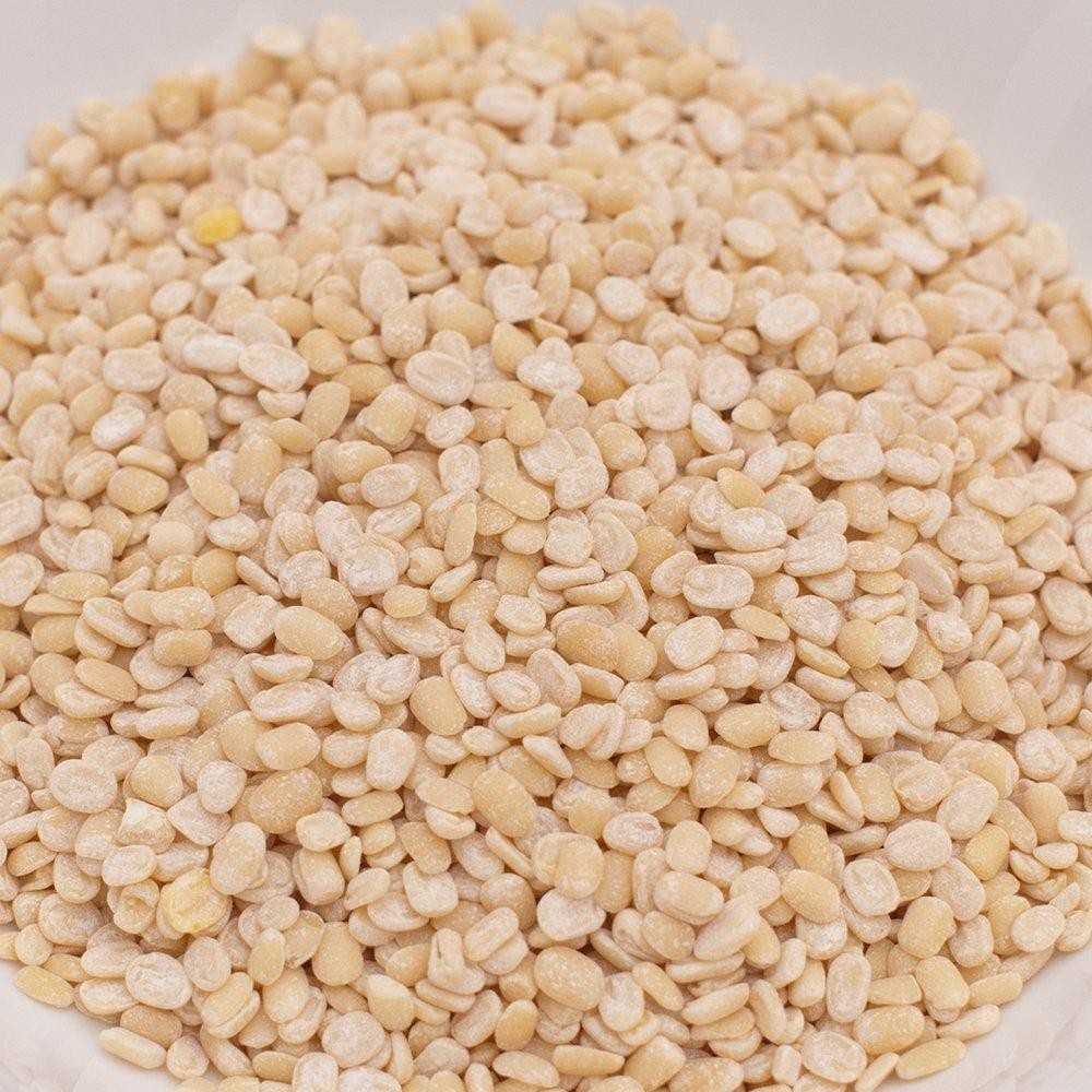 Black gram / black whole urad dal. These lentils are creamy white in color and have a milder flavor than whole black urad dal.